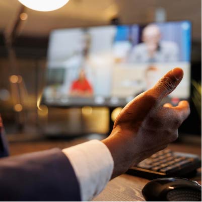 Pour la formation en langues des salariés malentendants, le formateur contacte son stagiaire grâce un logiciel de visio, sur son ordinateur, qui est évidemment adapté aux besoins spécifiques du stagiaire.